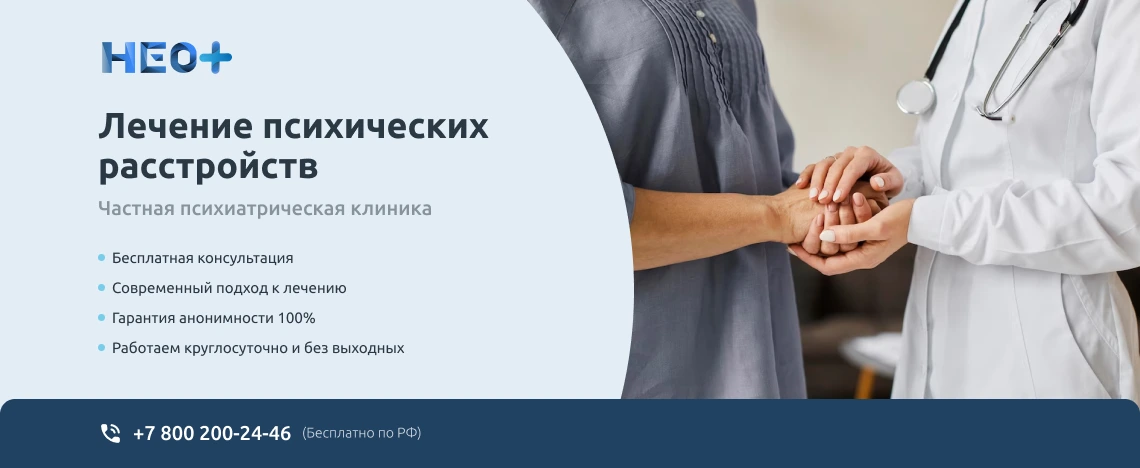 Записаться на прием к врачу-психиатру можно на официальном сайте клиники «НеоПлюс» в Тетюшах или по телефону ☎️ +7 (800) 200-24-46. Звоните нам, не запускайте проблему. Мы знаем, как вернуть здоровье и покой в Вашу семью!